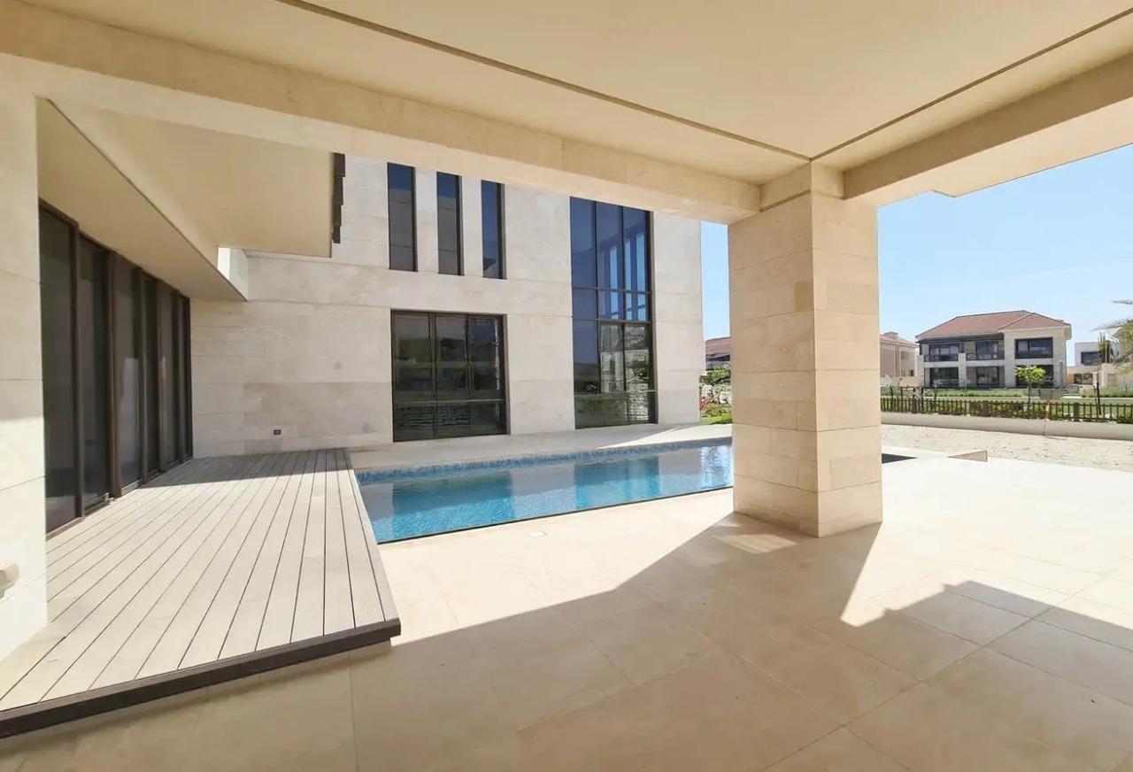 Located on the northwestern tip of Saadiyat Island, this single-row end-unit villa in Hidd Al Saadiyat, Abu Dhabi, offers a luxurious lifestyle in a private and serene setting. The villa features multiple living spaces, including formal and family areas, a modern kitchen, a guest bedroom, a maids’ room, and walk-in closets. Residents can enjoy a private swimming pool, beach access, dedicated parking, and a host of modern amenities. Perfect for families seeking comfort, privacy, and elegance, this ready-to-move-in villa combines architectural beauty with functional design.
